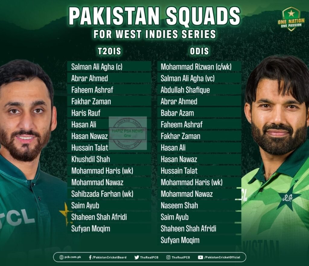 ویسٹ انڈیز کے ساتھ T_20اور ون ڈے سکواڈ کا اعلان کر دیا گیا